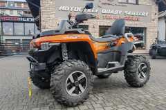 Quad wyposażony jest w 12-calowe aluminiowe felgi, opony terenowe 25-calowe oraz zbiornik paliwa o pojemności 30 litrów. Całość waży 425 kg, a ładowność sięga 697 kg, co czyni go nie tylko maszyną do rekreacji, ale i do pracy.
