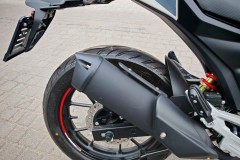 Dzięki przedniemu zawieszeniu teleskopowemu o skoku 130 mm oraz regulowanemu tylnemu amortyzatorowi typu Pro-link, RKS125 skutecznie tłumi nierówności, zapewniając komfortową i stabilną jazdę zarówno na miejskich ulicach, jak i na bardziej wymagających drogach. Regulacja napięcia wstępnego tylnego amortyzatora umożliwia dostosowanie ustawień zawieszenia do indywidualnych potrzeb motocyklisty.
