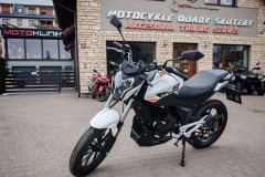 Wyposażony w przednią tarczę hamulcową o średnicy 278 mm oraz tylną o średnicy 220 mm, obie z dwutłoczkowymi zaciskami, układ hamulcowy CBS zapewnia skuteczne i bezpieczne hamowanie. System ten rozkłada siłę hamowania pomiędzy koła, gwarantując pełną kontrolę nawet w sytuacjach awaryjnych.