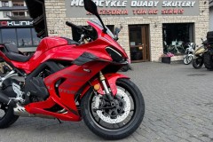 i radialnie zamontowanymi czterotłoczkowymi zaciskami hamulcowymi zapewnia ogromną, a jednocześnie precyzyjnie dozowaną siłę hamowania. Całość uzupełnia tylny hamulec z tarczą o średnicy 260 mm i dwutłoczkowym zaciskiem.