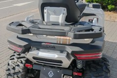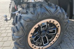 Zawieszenie zostało zaprojektowane z myślą o pokonywaniu trudnych przeszkód – z przodu zastosowano podwójne wahacze A ze stabilizatorem, a z tyłu niezależne zawieszenie z dużym skokiem. Wysoki prześwit (305 mm) oraz 26-calowe opony na aluminiowych felgach z systemem Beadlock sprawiają, że pojazd świetnie radzi sobie w głębokim błocie, piasku czy na kamienistym podłożu.