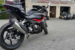 ZAWIESZENIE PRZÓD Upside-downZAWIESZENIE TYŁ Amortyzator centralnyOPONA PRZÓD 100/80-17 | BezdętkowaOPONA TYŁ 130/70-17 | BezdętkowaHAMULEC PRZÓD Tarczowy 260mm z ABSHAMULEC TYŁ Tarczowy 240mm z ABS